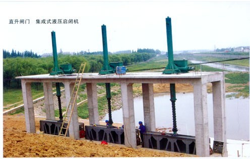 安裝時閘門整體豎入預留槽,在兩邊立框的下面墊上調整墊(嚴禁墊下橫梁),兩立框用手動葫蘆和斜拉立穩,將閘門找直找平,各地腳孔內串上地腳螺栓,調節好閘門的位置,支好模板進行二期澆注。